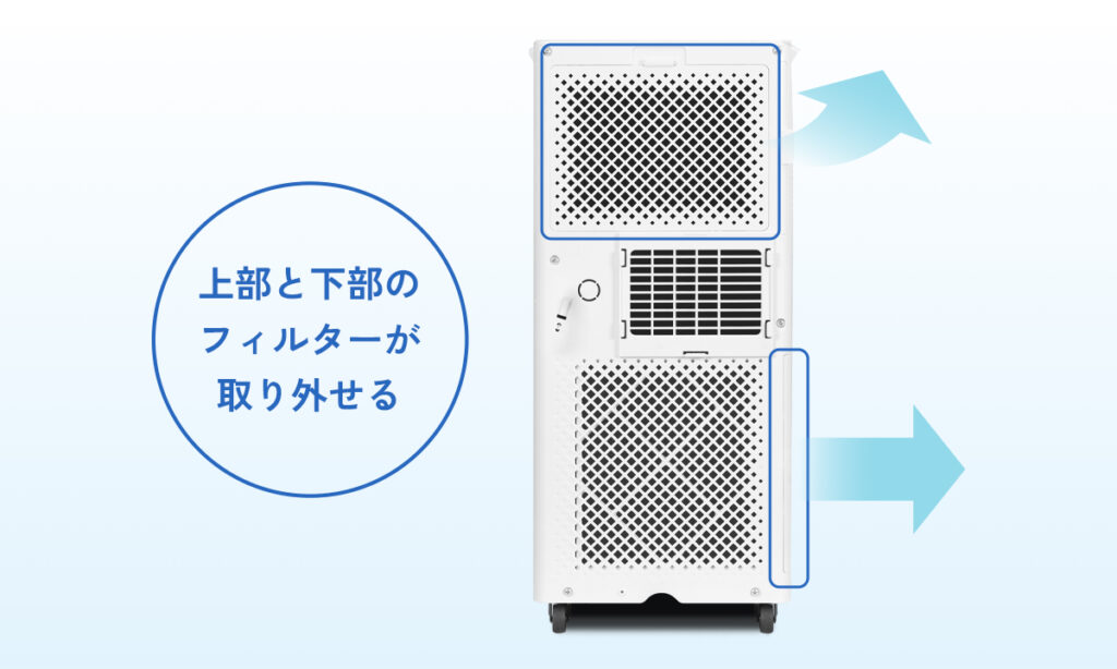 また、お手入れについても、上下2箇所のフィルターを取り外して掃除できるため、常に清潔な風を保つことができます。