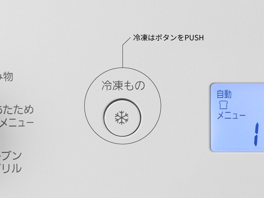 冷凍パン対応: カチカチの冷凍パンも、マイクロ波で中を温めつつヒーターで外をサクッと仕上げるから、まるで「焼きたて」のクオリティに。(モードを選択して冷凍ボタンを押すだけ)