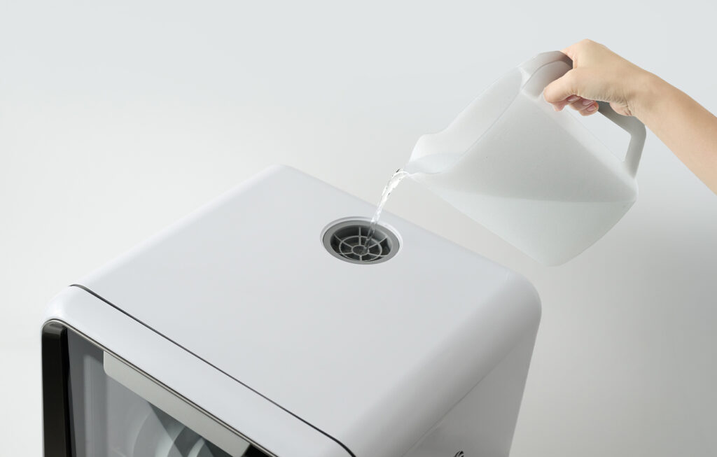 付属の給水カップで、本体の上から水を注ぐだけ。