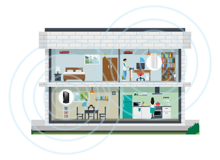「Wi-Fi EasyMesh™」という機能に対応したルーターと組み合わせると、家中に網目(メッシュ)のような通信網を作ることができます。